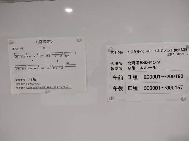 さて、いつもどおり車で家を出て、試験会場である北海道経済センターについたのが説明開始5分前の13時25分でした。試験教室となる8階のAホールはすでに受験者でいっぱいで、ギリギリまで勉強している人が多かったです。